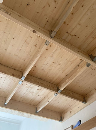 Since the room was small, it made sense to take advantage of the ceiling's height to create extra space. The walls were thick structural brick walls, which could carry some weight. In order to save floor space, I decided that the structure shouldn't be carried by columns but by the thick walls instead. With the help of a structural engineer, the wood beams dimensions were decided and loft bed was constructed without columns and visually clean.